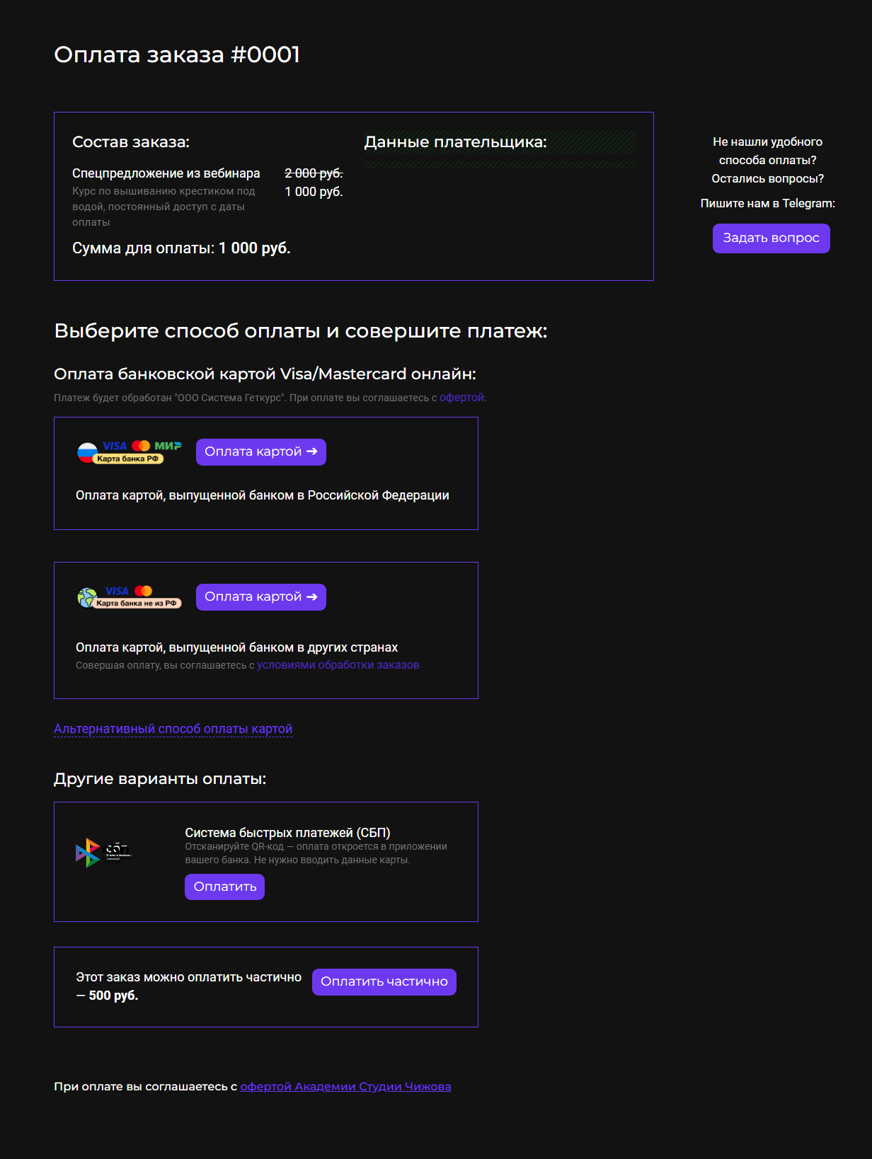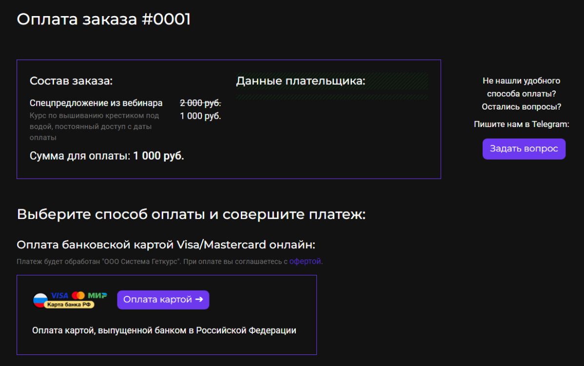 При покупке курсов с лендинга распродажи, участники курсов попадали на стандартную серую страницу GetCourse. Поэтому появился новый запрос на служебные страницы, чтобы люди «проходили» весь путь покупки в узнаваемом стиле.