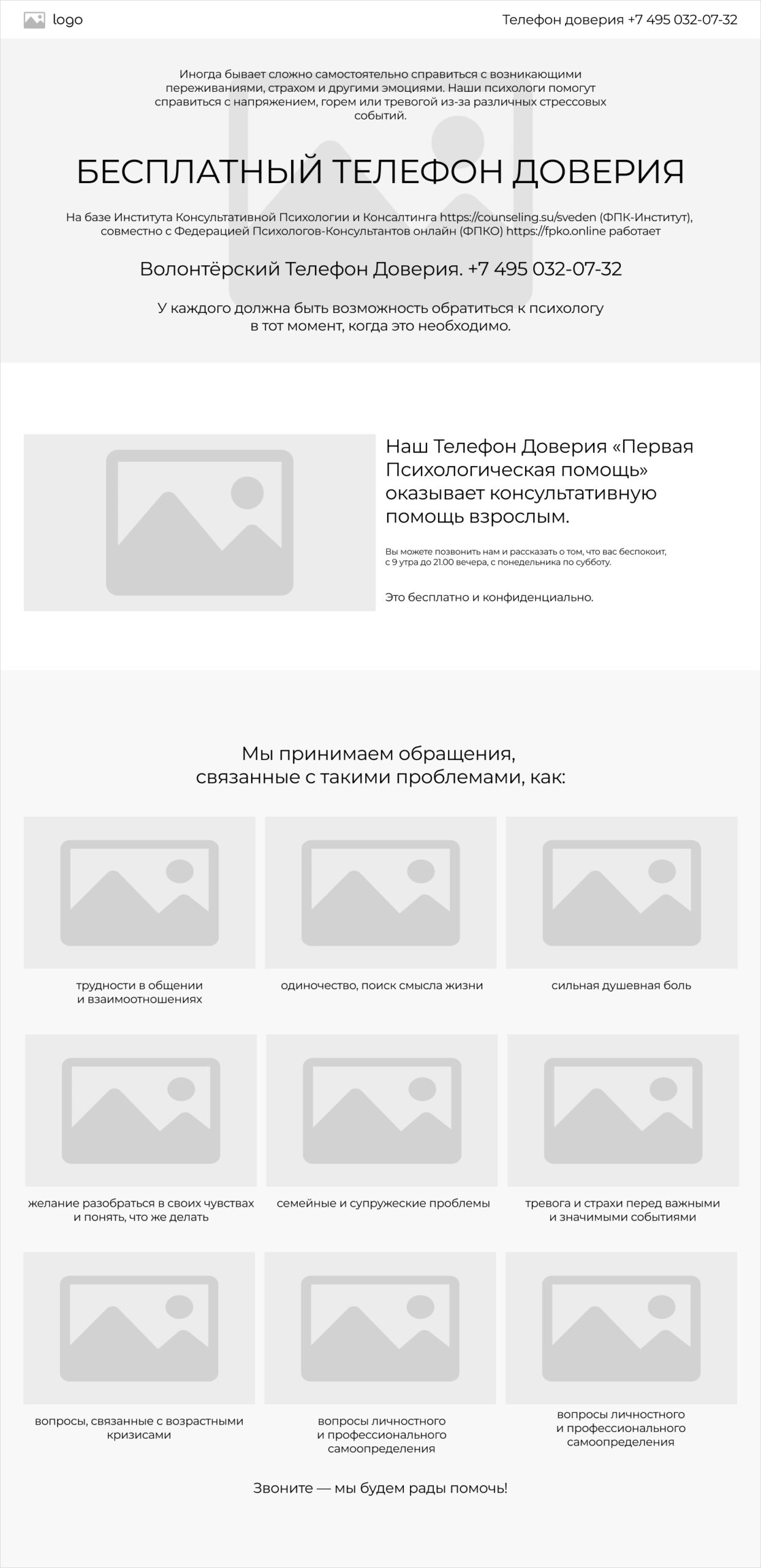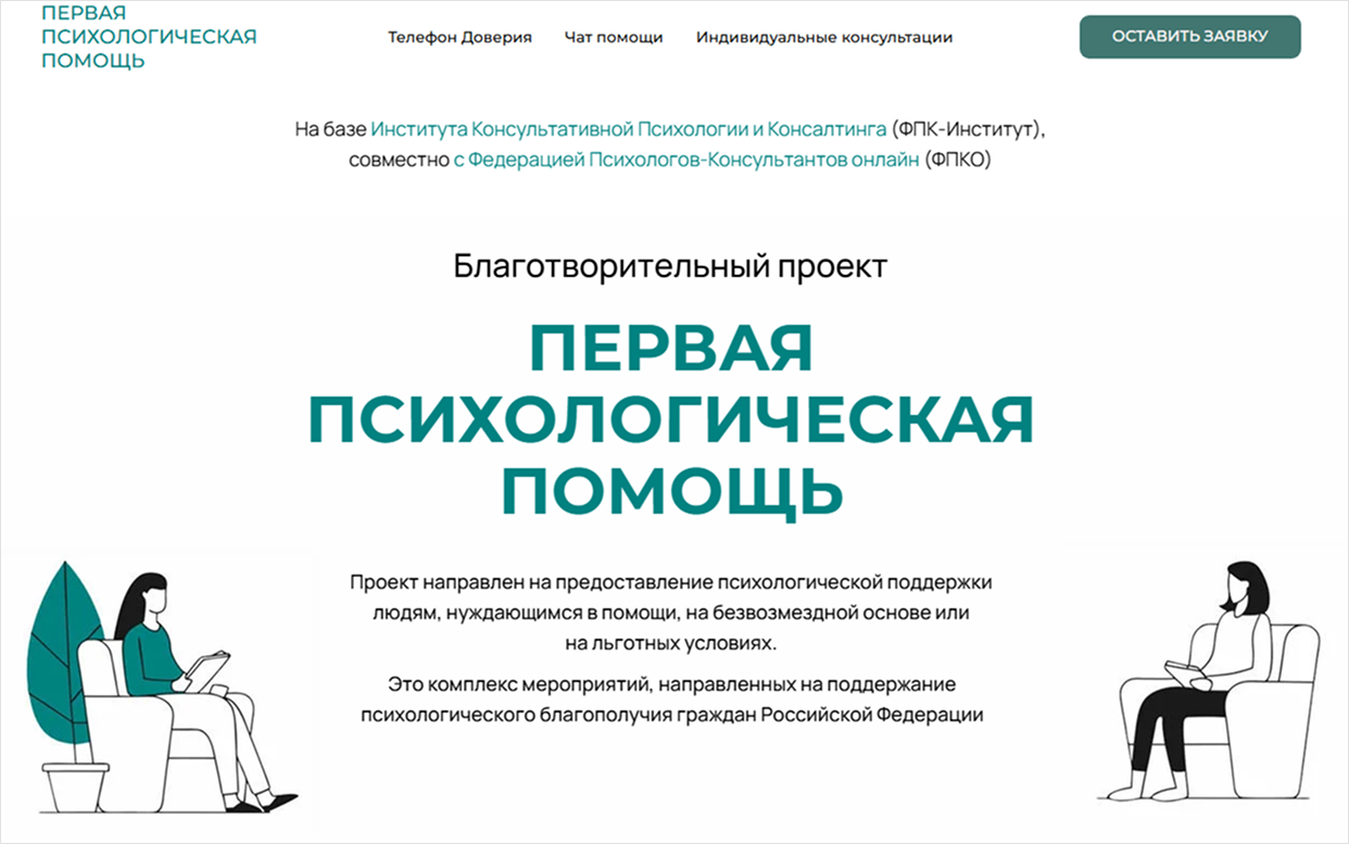 Сайт благотворительного проекта «Первая Психологическая Помощь»