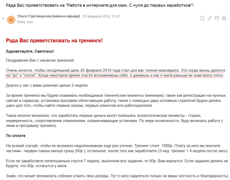 Вечером рассказала все мужу. Послушала, что я лохушка и просто потеряю эти 50 руб. Но сама решила, что это мизерные деньги, я лишь попробую. И оплатила участие.